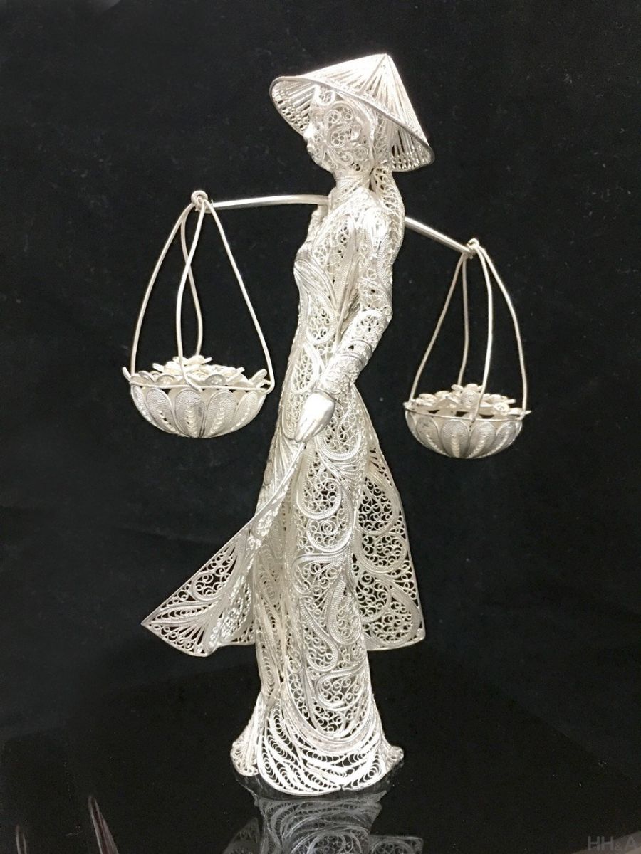 Ảnh: Mô hình bạc Cô gái áo dài- một trong những sản phẩm của anh Quách Phan Tuấn Anh