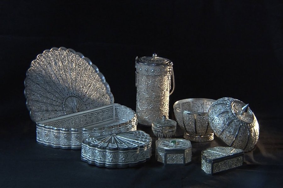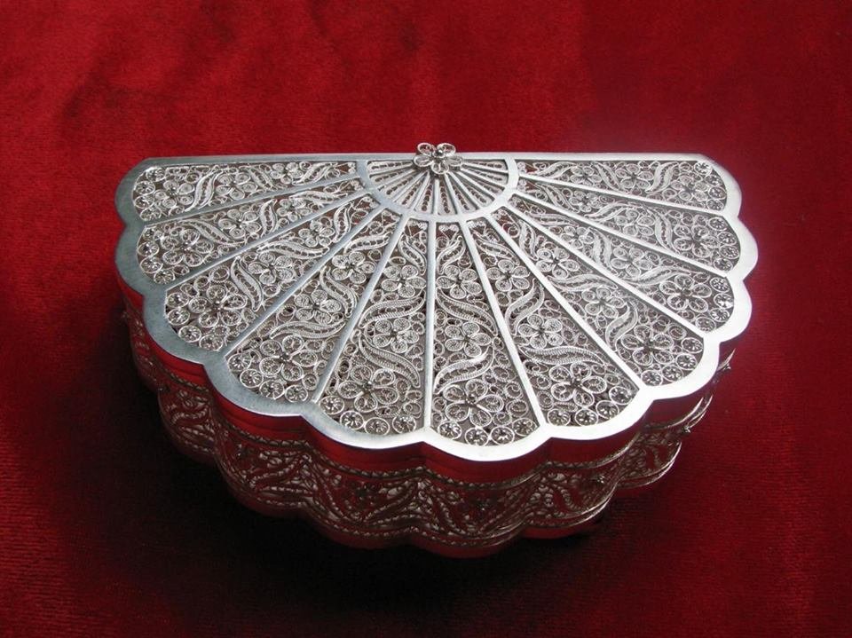 - Hoàn thành thành phẩm: nghệ nhân uốn những sợi bạc li ti đã se thành các họa tiết trang trí gắn lên bộ khung.