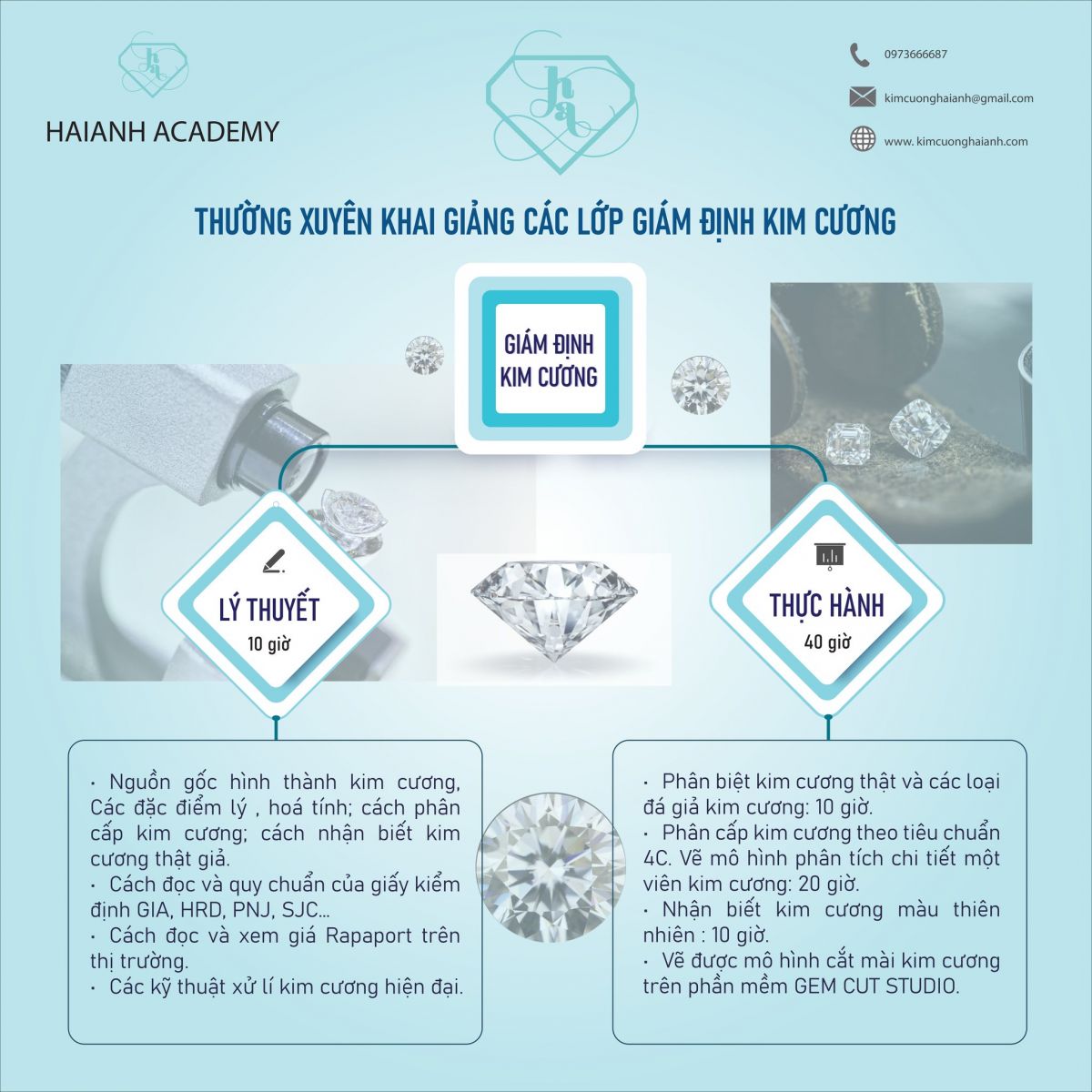 Nhận thấy được nhu cầu đó, Hải Anh mở các lớp kiểm định kim cương, chuyên môn từ cơ bản đến nâng cao, góp phần giúp bạn có những kiến thức liên quan đến kim cương cũng nhưng những kiến thức liên quan ngành nghề.