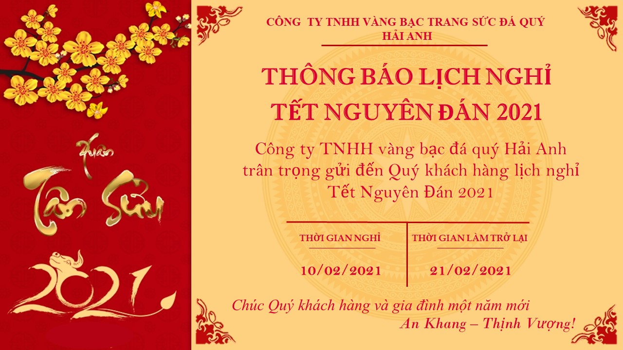 THÔNG BÁO LỊCH NGHỈ TẾT NGUYÊN ĐÁN 2021
