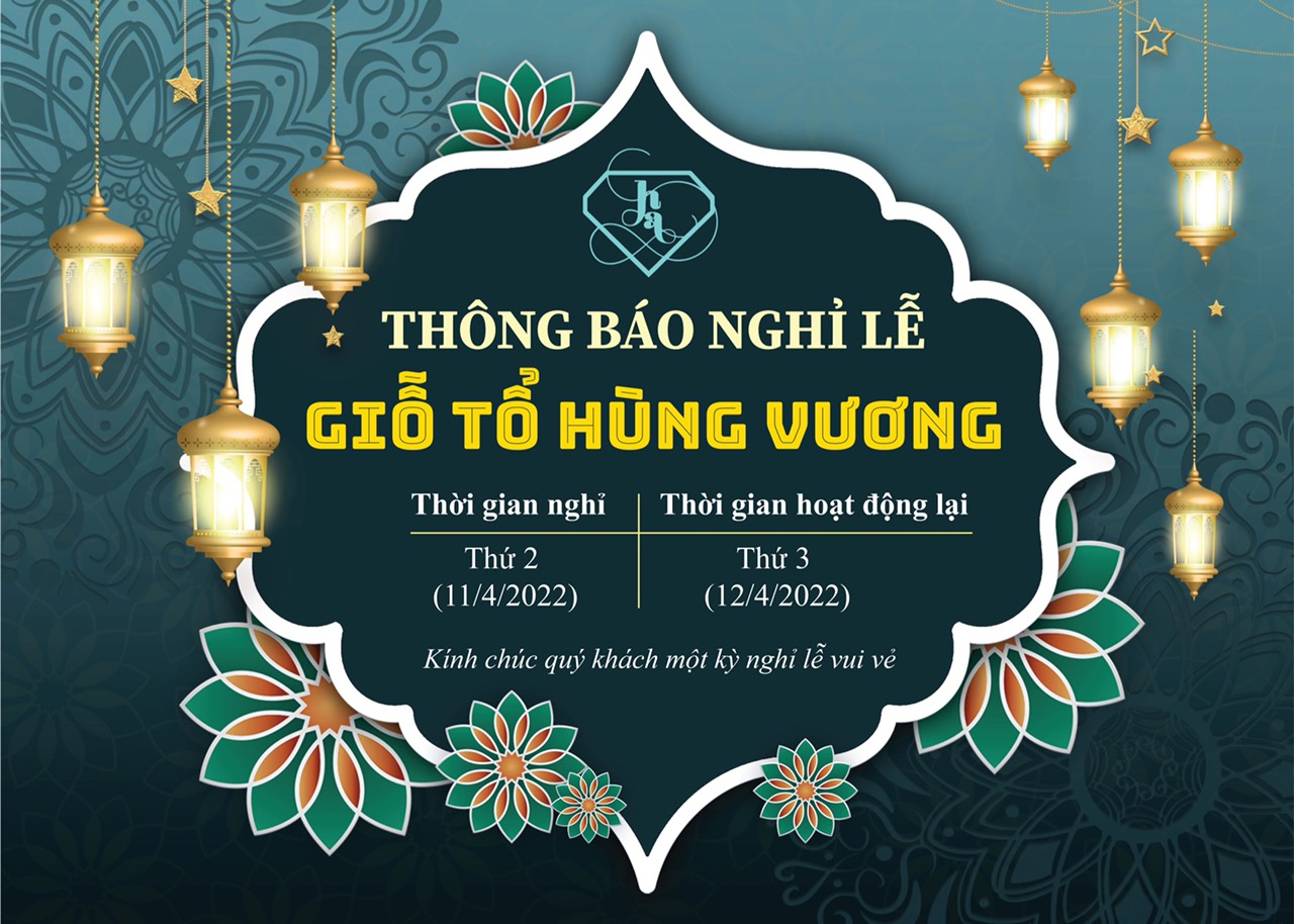 Công ty TNHH Vàng bạc Trang sức Đá quý Hải anh xin trân trọng thông báo đến Quý khách hàng và Quý đối tác thời gian nghỉ lễ Giỗ Tổ Hùng Vương: