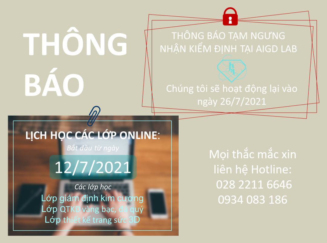 AIGD LAB xin thông báo, chúng tôi sẽ tạm ngưng nhận mẫu kiểm định từ ngày 9/7/2021 và sẽ HOẠT ĐỘNG LẠI vào ngày 26/7/2021.